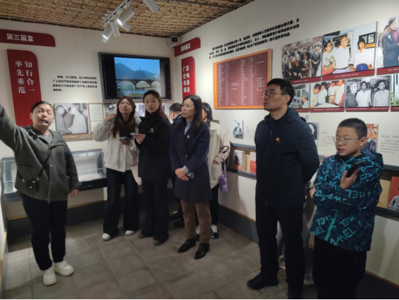 随后,全体人员前往八路军渑池兵站纪念馆。在讲解员的细致引导下,全体人员循着历史脉络,通过馆内陈列的珍贵实物、历史图片、文献资料及场景复原展陈,系统了解了抗日战争时期八路军在豫西地区开展抗日救亡运动、传递革命情报、保障物资运输的光辉历程。从简陋的办公用具到锈迹斑斑的武器装备,从泛黄的电报手稿到记载着军民鱼水情的书信,每一件展品都承载着革命先辈的奋斗足迹。参观过程中,大家不时驻足凝视、轻声交流,深刻感悟着革命年代里共产党人不怕牺牲、艰苦奋斗的崇高精神,对 “初心” 的内涵有了更直观的理解。