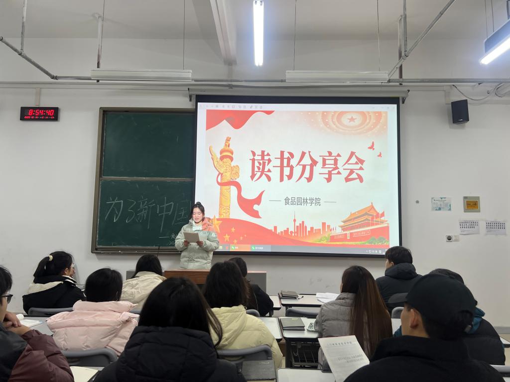 为深入推进入党积极分子思想政治教育,引导青年学生从党的经典著作中感悟思想伟力、筑牢信仰之基,12 月 14 日晚,食品园林学院第一、二党支部组织入党积极分子在 71331 开展读书分享活动。入党积极分子代表王芳、卢斌贺、张梦瑶三位同学,分别围绕《中国共产党简史》、《毛泽东选集》两部经典著作,进行分享,通过理论溯源与实践结合的联动模式,助推党史学习教育从“学理”向“践行”深度扎根。