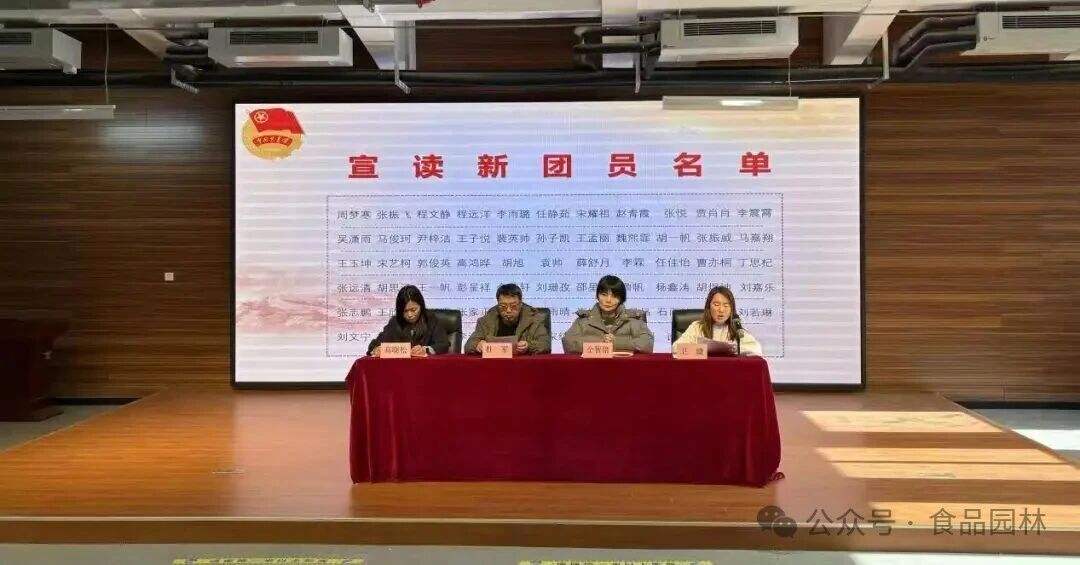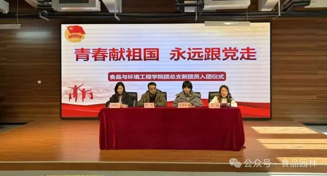 为深入学习贯彻党的二十大精神,进一步加强青年思想政治引领,激励广大青年学子坚定理想信念、勇担时代使命,2026年1月7日,食品与环境工程学院在71324报告厅隆重举行“青春献礼祖国 永远跟党走”新团员入团仪式。学院党总支书记杜军、校团委副书记仝智倍、学院党总支副书记高晓松等出席仪式,团总支书记卫婕主持,与各团支部代表、新老团员齐聚一堂,共同见证这一庄严时刻。