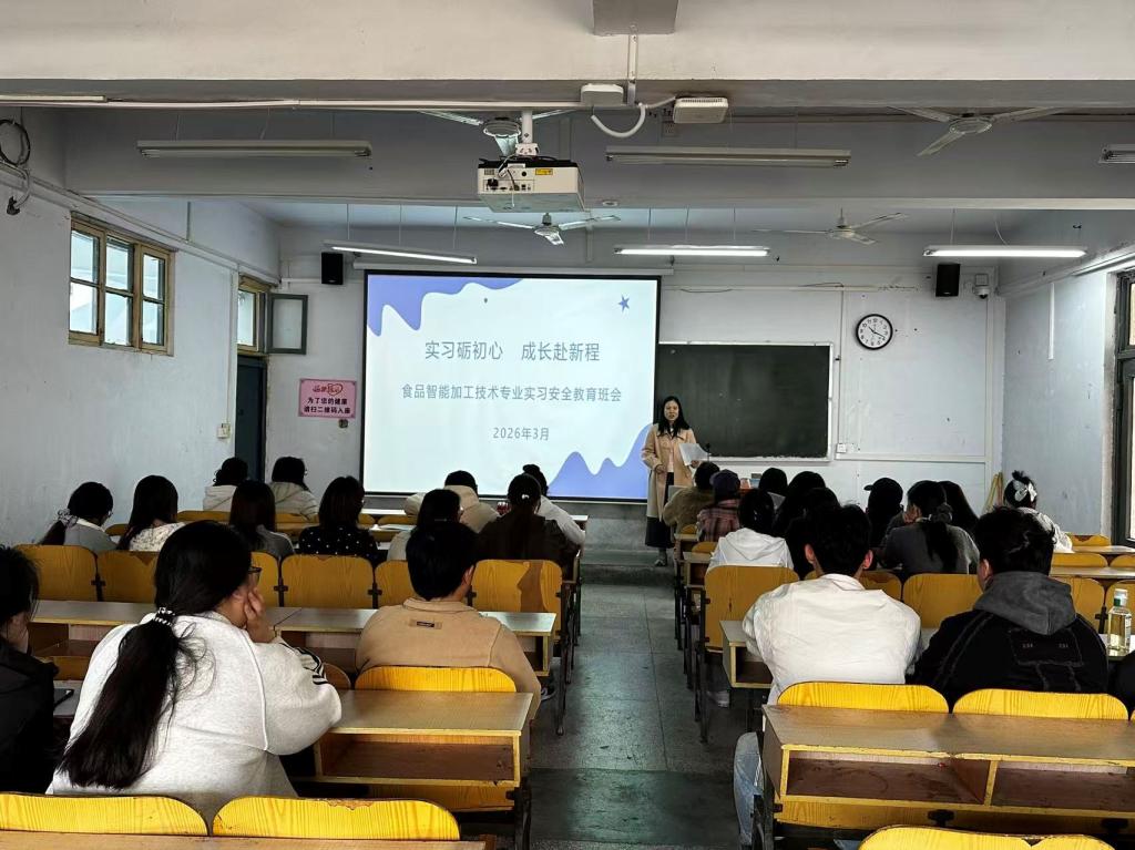 为扎实推进产教融合,强化实习学生安全意识与职业素养,确保2024级食品智能加工技术(含酒类智能加工技术)专业29名学生赴南京喜之郎食品有限公司实习工作安全有序开展,3月26日中午,食品智能加工技术教研室与学生科共同召开专题实习动员暨安全教育大会。专任教师、辅导员及全体即将赴企业实习学生参加会议。