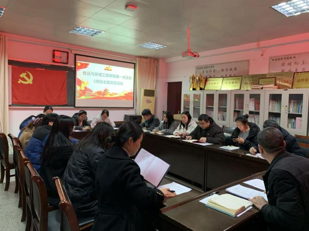 为深入贯彻学习习近平总书记重要讲话精神,学习职业教育教学关键要素改革以及开展组织生活会等相关内容。3月19日,食品与环境工程学院第一党支部在2408会议室召开3月份主题党日活动。全体党员参加,支部书记杨智勇主持。
